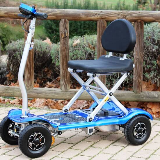 Es uno de los scooters más ligeros del mercado. Al estar fabricado en aluminio y llevar baterías de litio, su peso es muy reducido, lo que facilita enormemente que un familiar pueda subirlo al maletero. Además, una vez plegado, lo puede mover como si fuera una maleta con ruedas (trolley), por lo que no tendrá que cargarlo a pulso en ningún momento.