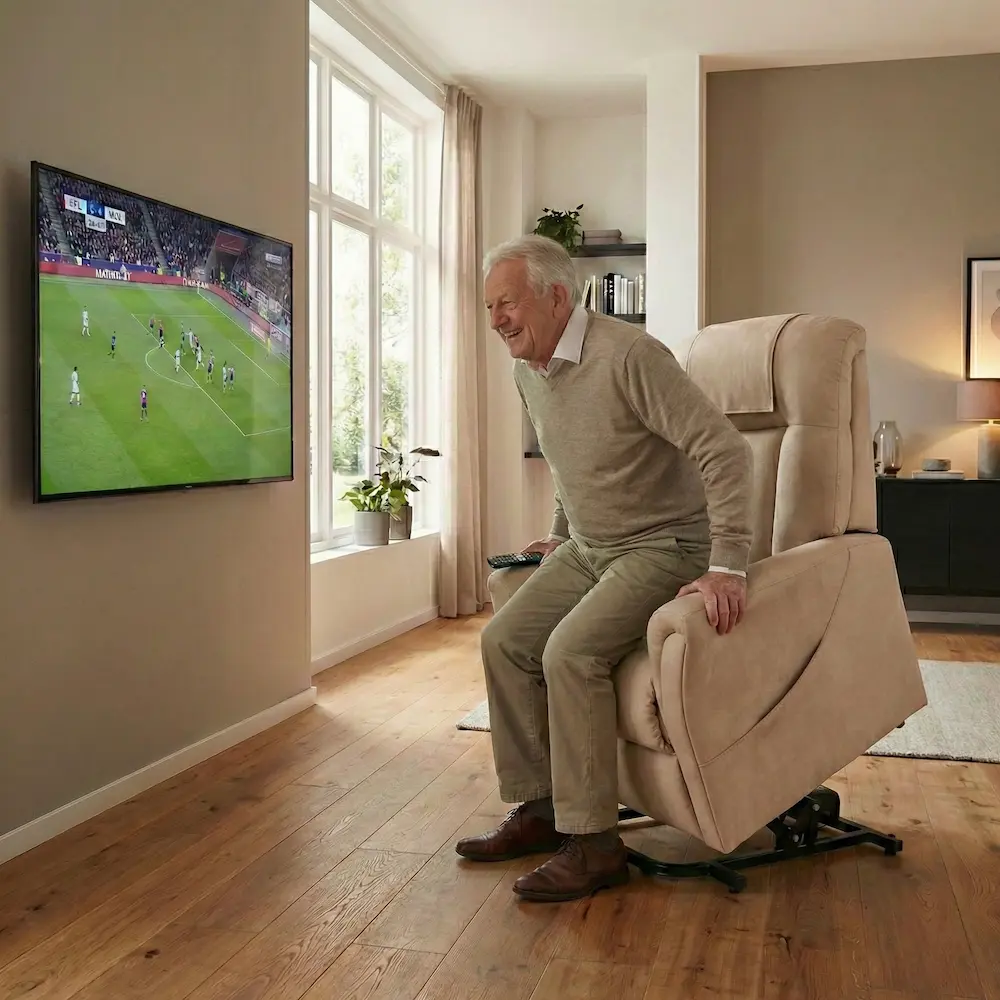 La función de elevación vertical, incluida en el modelo de 2 motores, está especialmente pensada para ayudar a personas con dificultades de movilidad. Reduce el esfuerzo al incorporarse y aporta mayor independencia en el día a día.